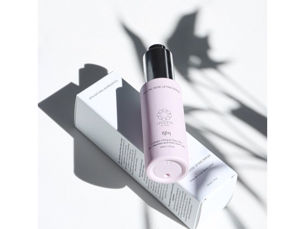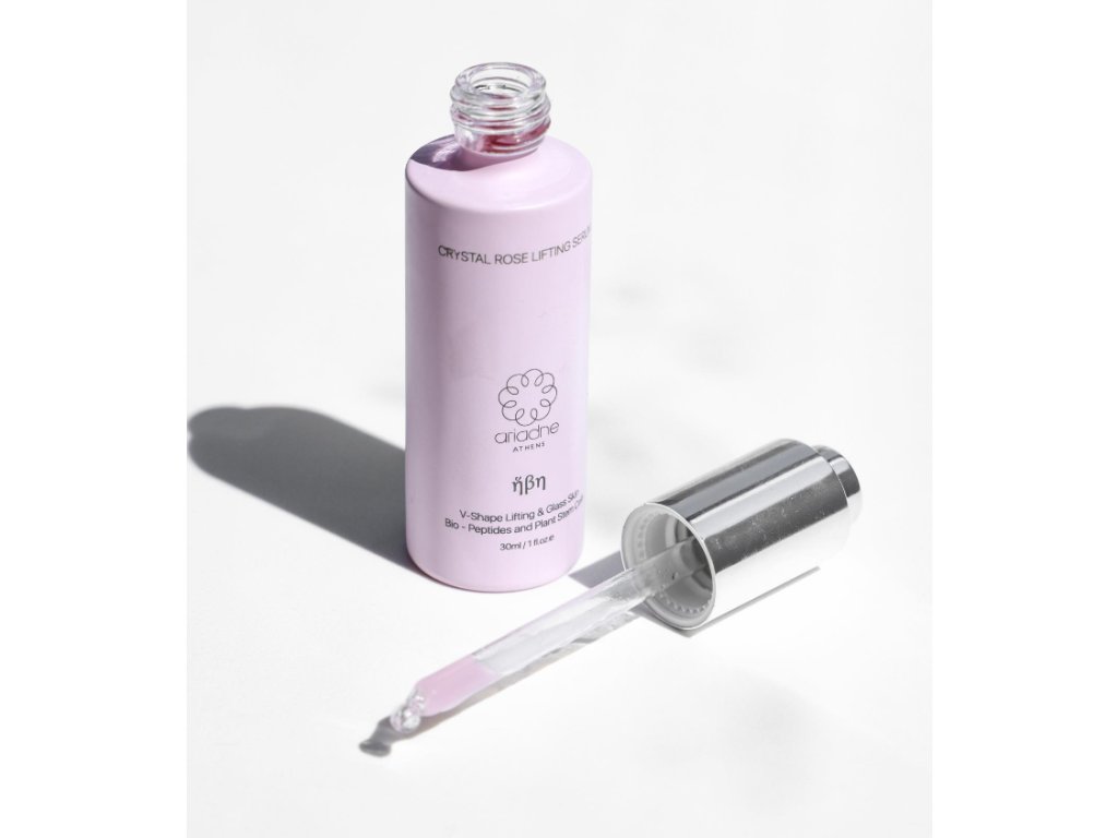 Ariadne Athens Crystal Rose Lifting Serum je lehké mikrosérum inspirované pokročilou vědou epigenetiky. Kombinace biopeptidů a rostlinných kmenových buněk je navržena tak, aby podpořila liftingový efekt „V-shape“ – zejména v oblasti krku, tváří a očního okolí.