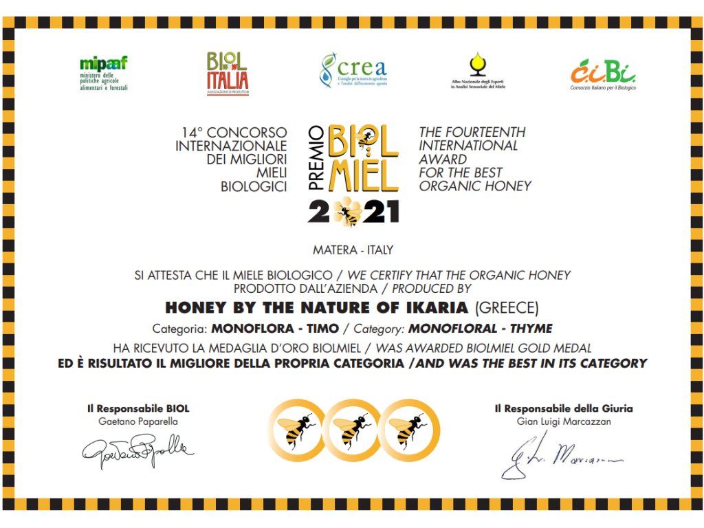 Med z našeho ostrova Ikaria odjakživa byl a nadále je základním prvkem naší výživy - „jedním z tajemství“, které má přímou souvislost se zaznamenanou skutečností o naší dlouhověkosti. Neochvějným potvrzením tohoto přínosu je fakt, že všechny medy z Ikárie (tymiánový, borovicový, vřesový a květový med) pocházejí z divokých přírodních zdrojů, z drsnosti a tvrdosti naší krajiny. Absence intenzivních plodin na ostrově nás vede k tomu, že nemusíme nic chemicky ošetřovat.