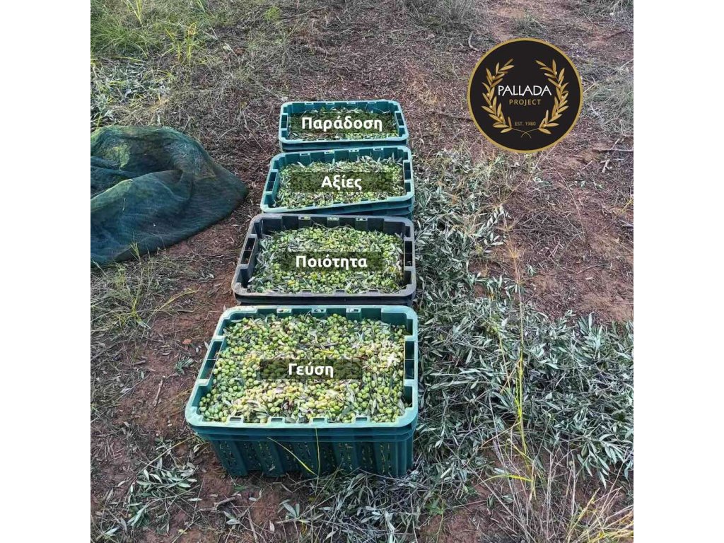 Pallada je krétský extra panenský olivový olej z oblasti Akrotiri (Chania), vyráběný výhradně z odrůdy Koroneiki. Sklizené olivy se převáží do mlýna v plastových boxech a lněných pytlích tak, aby se nevrstvily a byly větrané, a zpracování probíhá během pár hodin po sklizni lisováním za studena. Výsledkem je olej „superior“ kvality s vysokou nutriční hodnotou a co nejlepšími organoleptickými vlastnostmi.