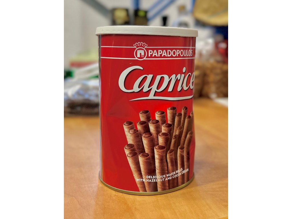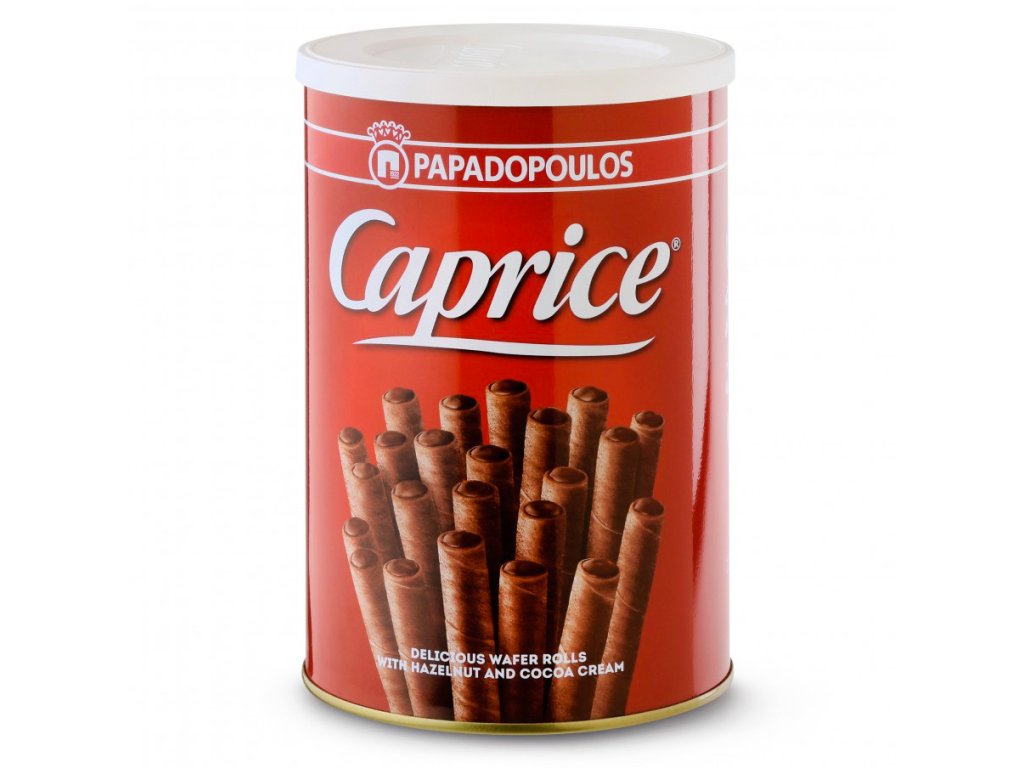 Caprice Classic jsou křupavé řecké trubičky ve tvaru doutníku plněné lískovým oříškem a kakaovým krémem. V Řecku je milují Ti nejmenší i nejstarší... Však počkejte a sami uvidíte... Přestanete, až když bude krabička prázdná! :)